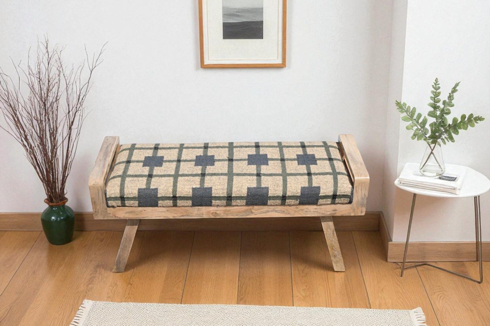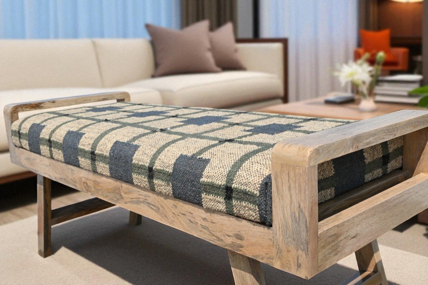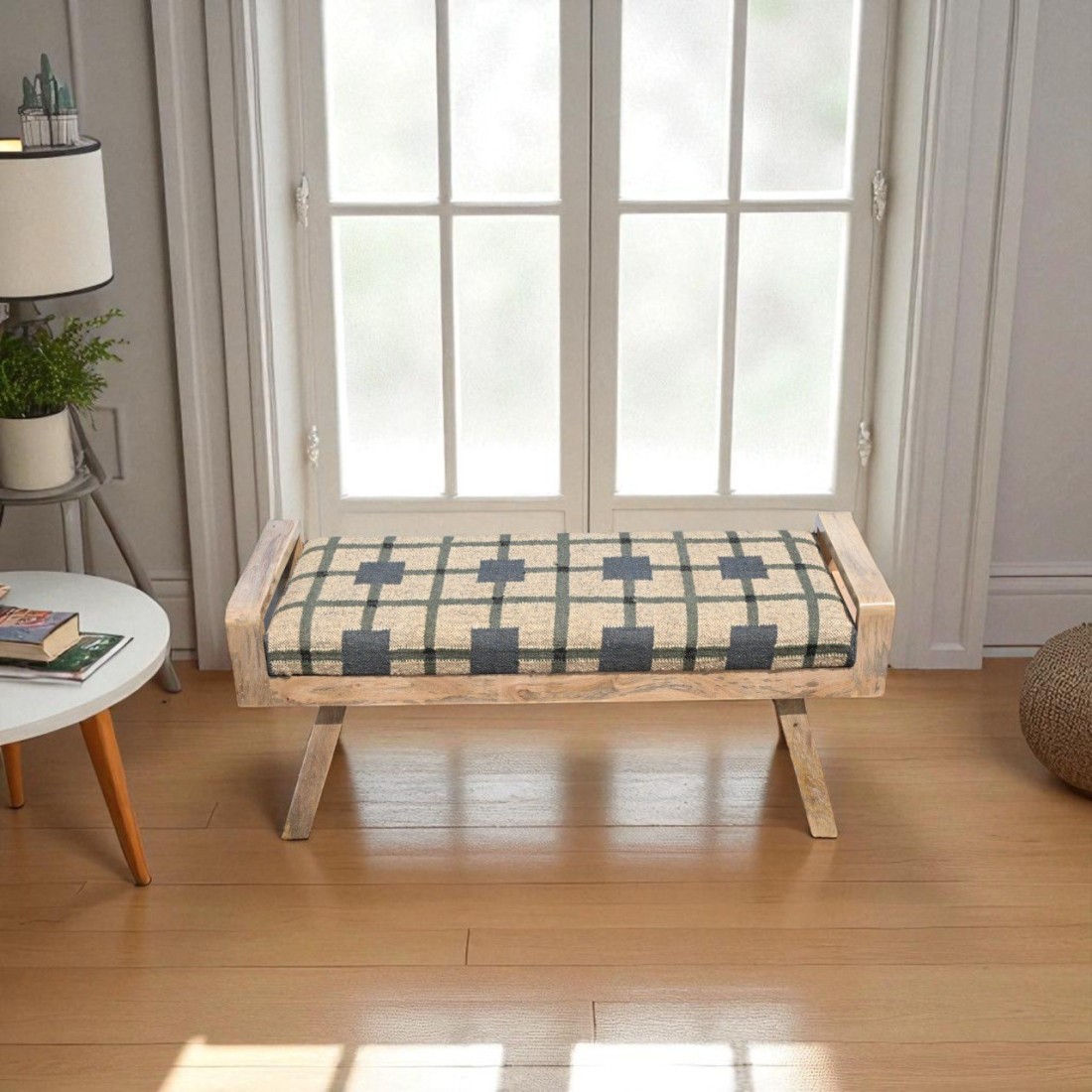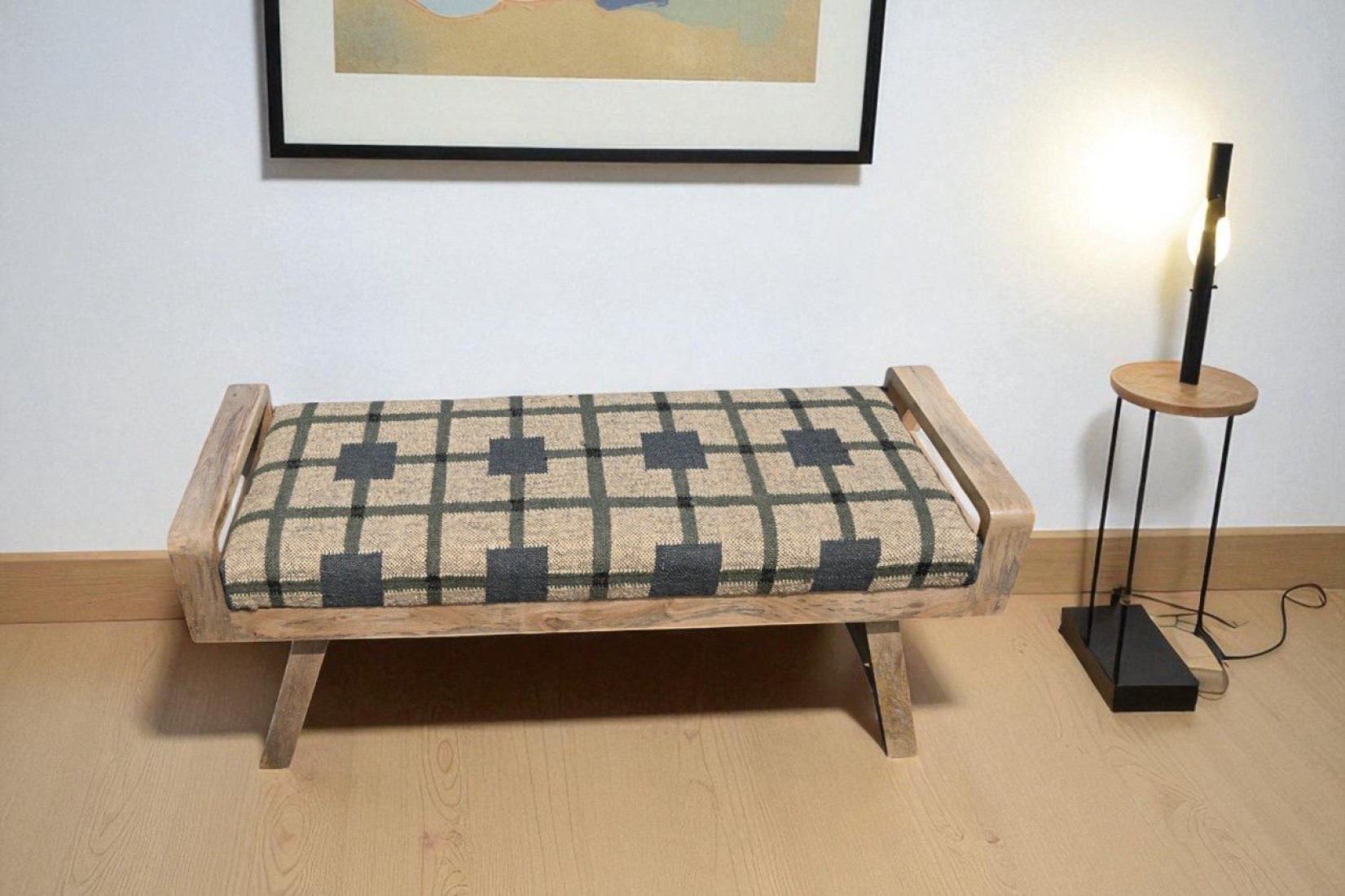Footstool Bench, Aztec Bench, Farmhouse Decor, Entry Bench, Ottoman Upholstered Bench, Handmade Furniture, Turkish Rug Bench,