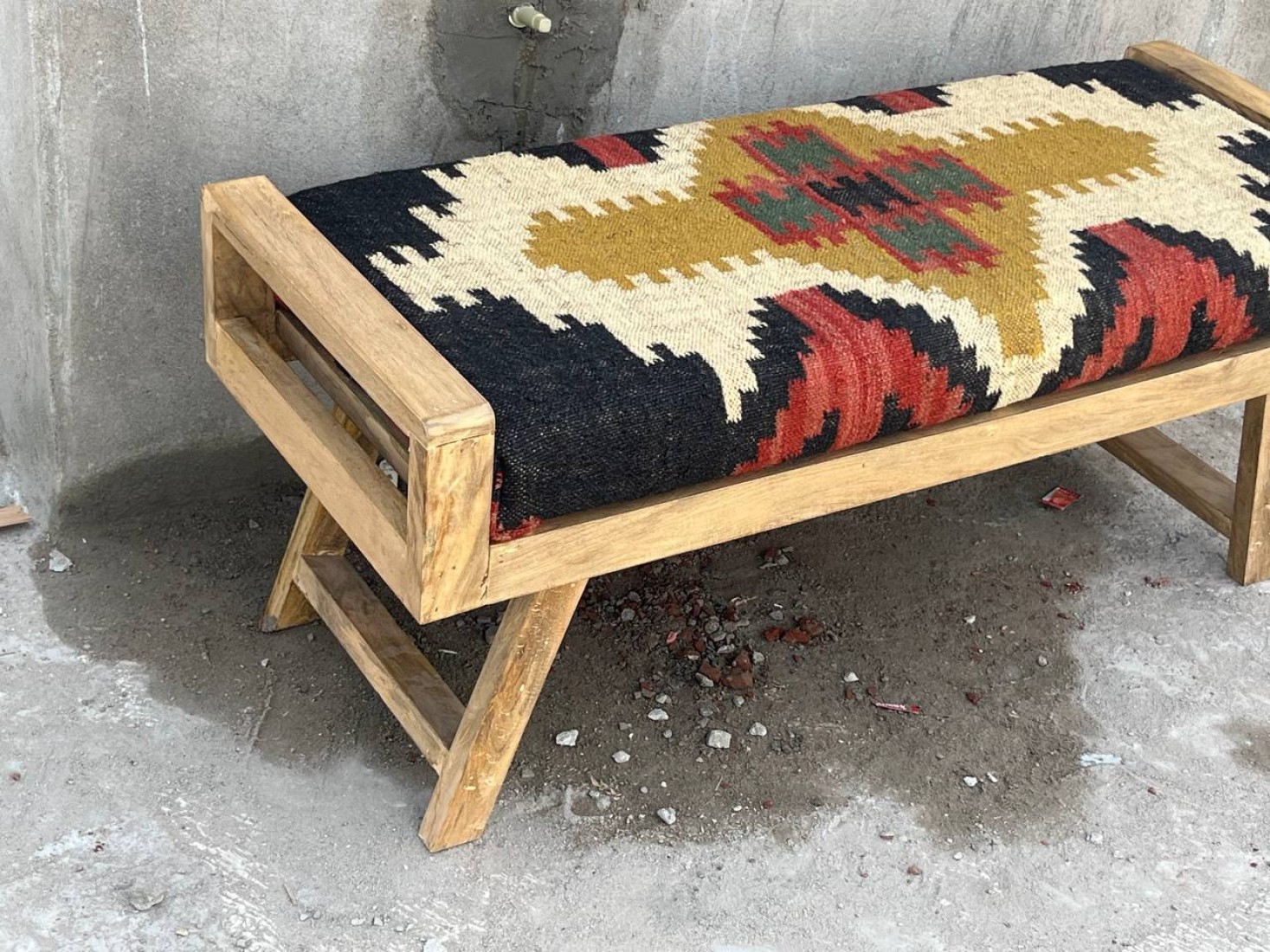 Handmade Entry Chair, Kilim Rug Bench, High Quality Bench, Custom Made In Any Size