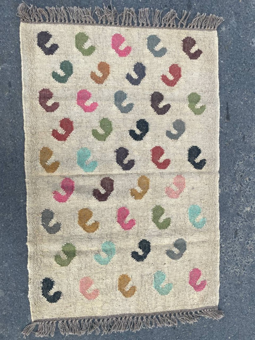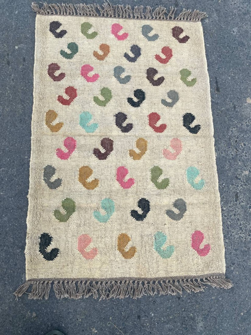 The wool jute rug is made in finest quality of wool and jute material in a ratio of 3:1. These have fastness of color. You can wash it by hand. This is suitable for the high traffic area. Due to two-color, wool and jute material, It’s hide the stain and dust. This is very ideal for those who have pets or Baby. Here find the best contemporary design wool jute dhurrie. This is perfect for the any type of home decor due to the vintage look.
