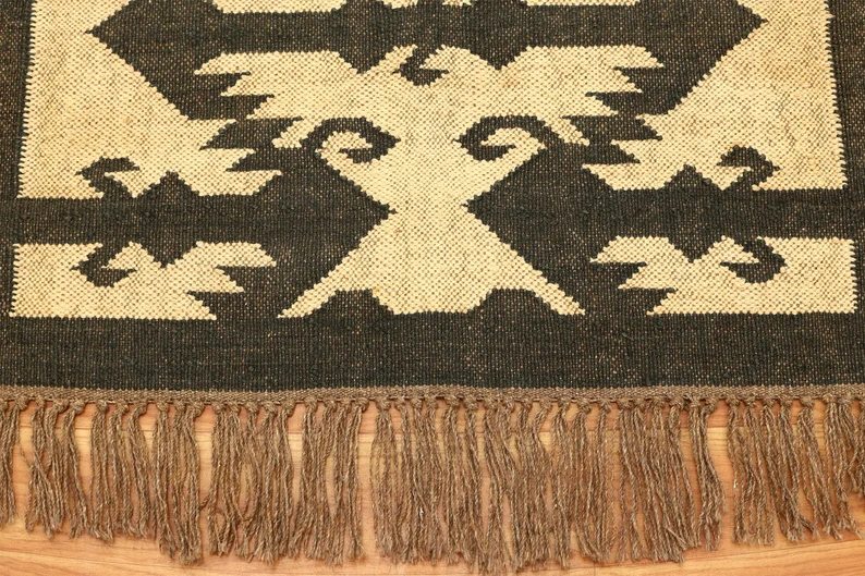 The wool jute rug is made in finest quality of wool and jute material in a ratio of 3:1. These have fastness of color. You can wash it by hand. This is suitable for the high traffic area. Due to two-color, wool and jute material, It’s hide the stain and dust. This is very ideal for those who have pets or Baby. Here find the best contemporary design wool jute dhurrie. This is perfect for the any type of home decor due to the vintage look.