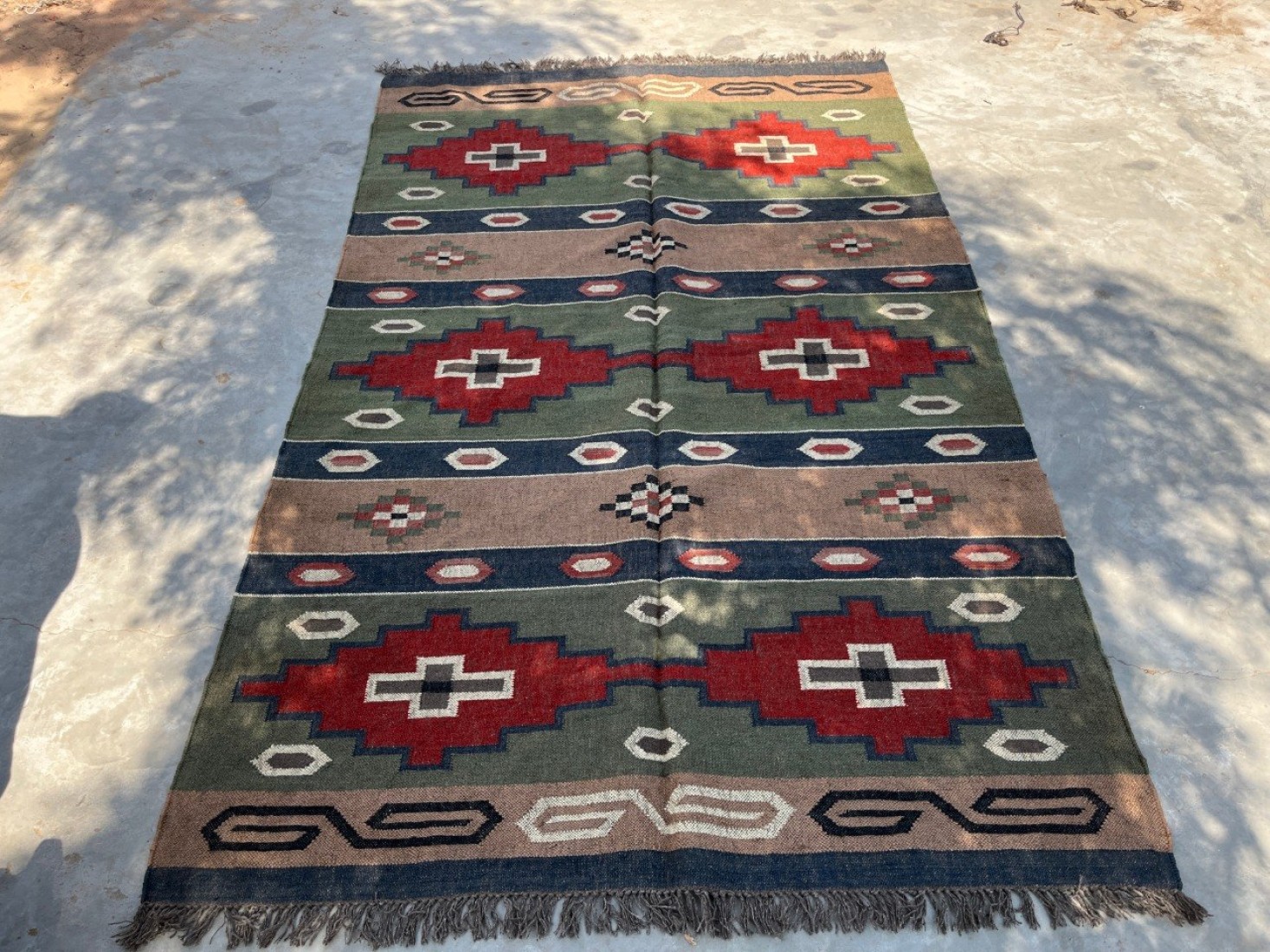 The wool jute rug is made in finest quality of wool and jute material in a ratio of 3:1. These have fastness of color. You can wash it by hand. This is suitable for the high traffic area. Due to two-color, wool and jute material, It’s hide the stain and dust. This is very ideal for those who have pets or Baby. Here find the best contemporary design wool jute dhurrie. This is perfect for the any type of home decor due to the vintage look.